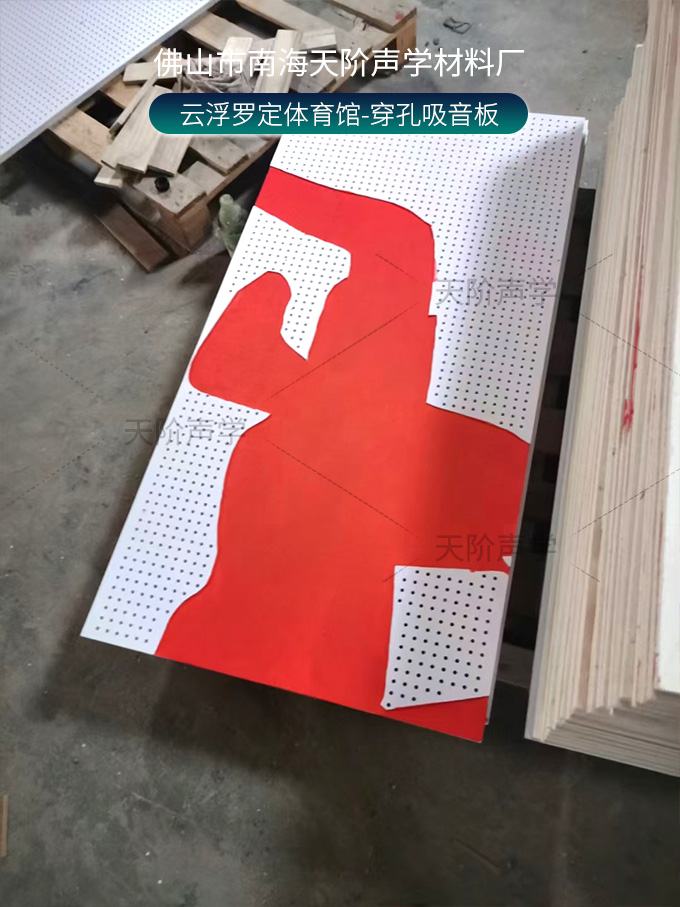 云浮羅定體育場項目改造中,使用平板吊頂空間吸聲體用頂部吸音裝飾;墻面選用白色飾面的穿孔吸音板,基材選用不燃的玻鎂基材,運動造型的穿孔設計,活力動感,有出色的降噪效果。