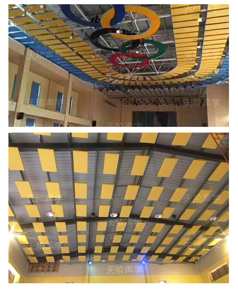 果基本相同。水平懸掛板狀空間吸聲體的離頂高度一般為房間凈高的1/5至1/7左右,一般來(lái)說(shuō),考慮到施工的難易程度,空間吸聲體懸掛在建筑頂部的鋼架以下,其高度剛好會(huì)在