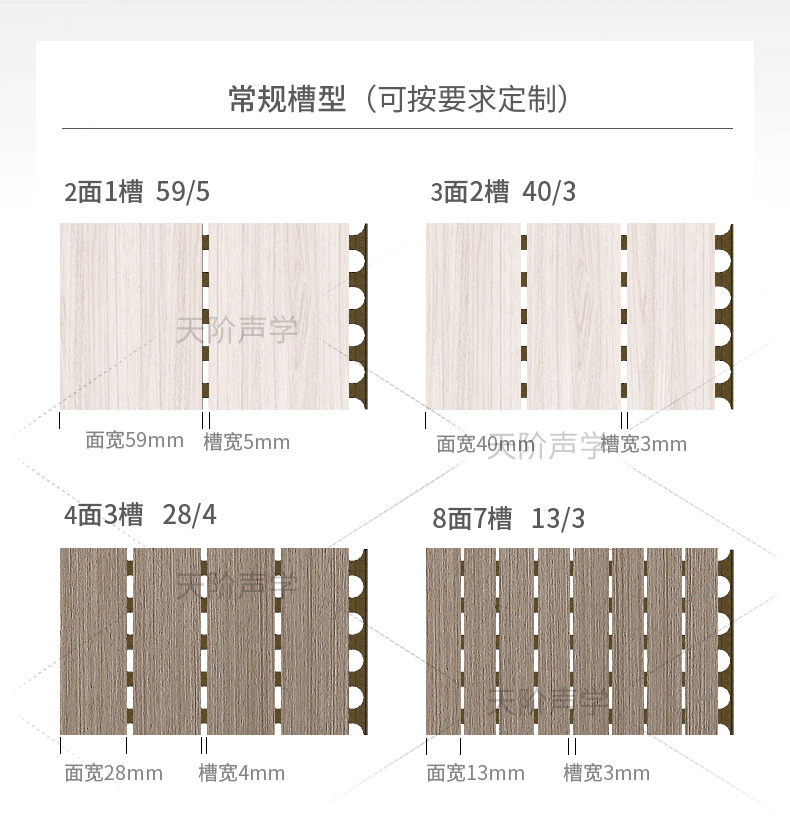 吸音板規格、厚度、基材和飾面選擇很多,詳情致電天階聲學免費取拿樣板