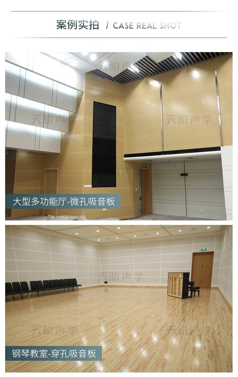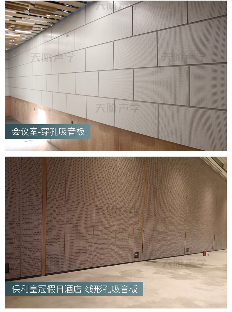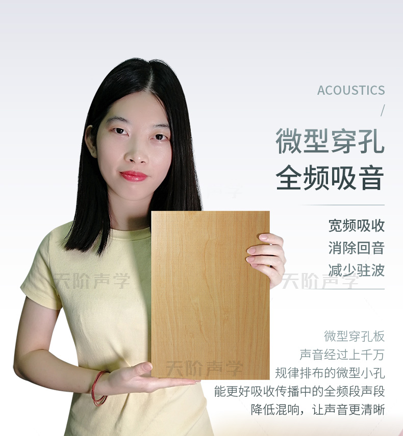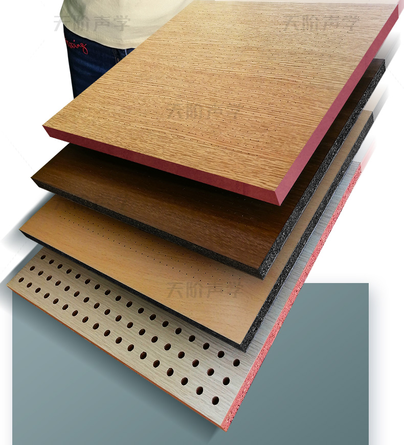 孔木吸音板是一種在密度板上直接穿孔的共振吸聲材料??啄疚舭鍖ξ曨l譜選擇性較強,對低頻有很好的吸聲性能。如在吸聲結構后空腔上填入適量的吸聲棉可提高中、高頻吸聲效果。 我們的孔木吸音板: 天階聲學孔木吸音板采用高質的中纖板、具有環(huán)保、防火、防潮等性能,飾面顏色及材料選擇性廣,能很好地滿足客戶多樣化的聲學及裝飾需求。較槽木吸音板,孔木吸音板相對抗撞擊能力強。