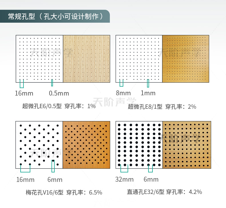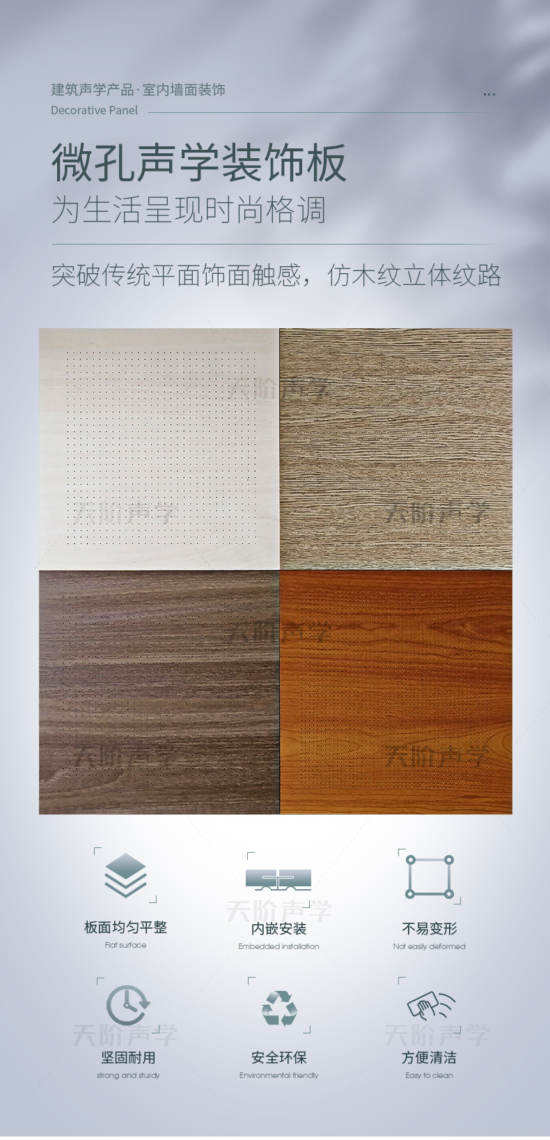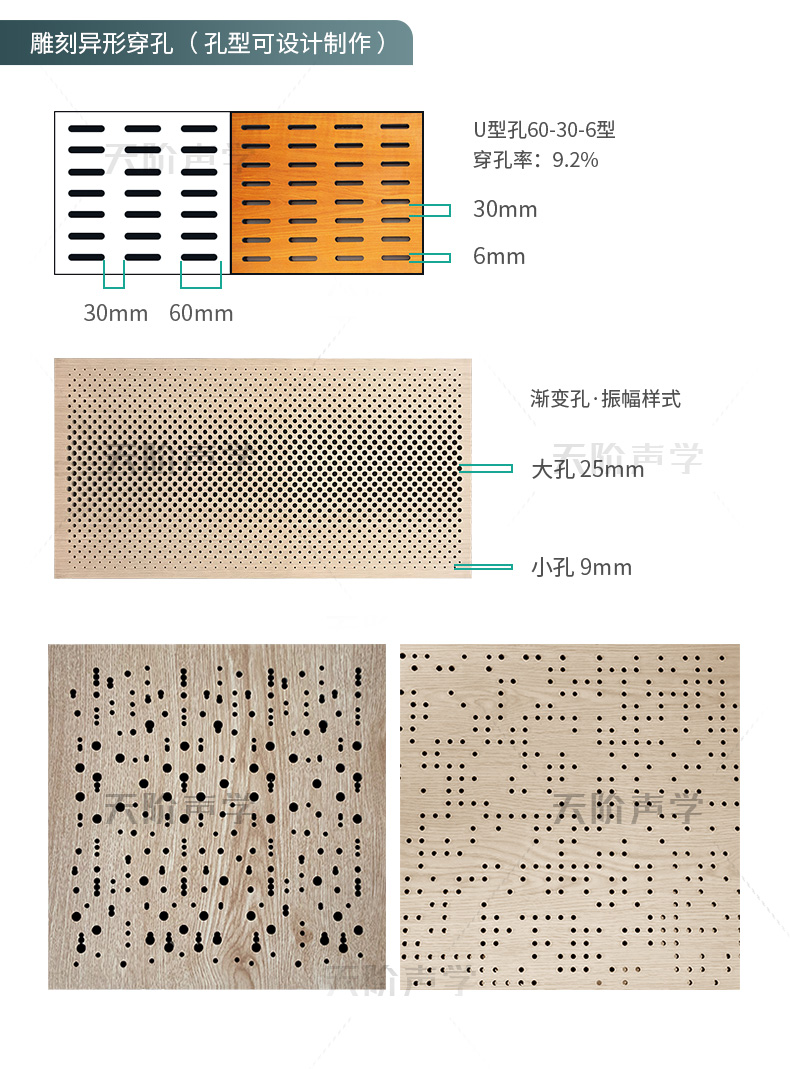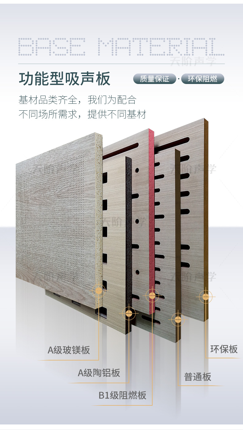 孔木吸音板是一種在密度板上直接穿孔的共振吸聲材料??啄疚舭鍖ξ曨l譜選擇性較強,對低頻有很好的吸聲性能。如在吸聲結構后空腔上填入適量的吸聲棉可提高中、高頻吸聲效果。 我們的孔木吸音板: 天階聲學孔木吸音板采用高質的中纖板、具有環(huán)保、防火、防潮等性能,飾面顏色及材料選擇性廣,能很好地滿足客戶多樣化的聲學及裝飾需求。較槽木吸音板,孔木吸音板相對抗撞擊能力強。