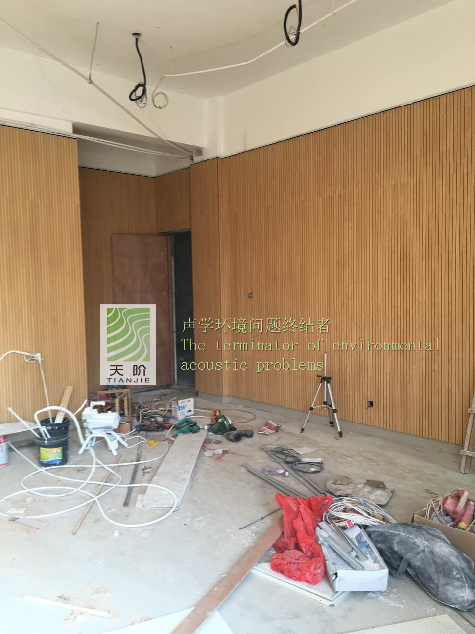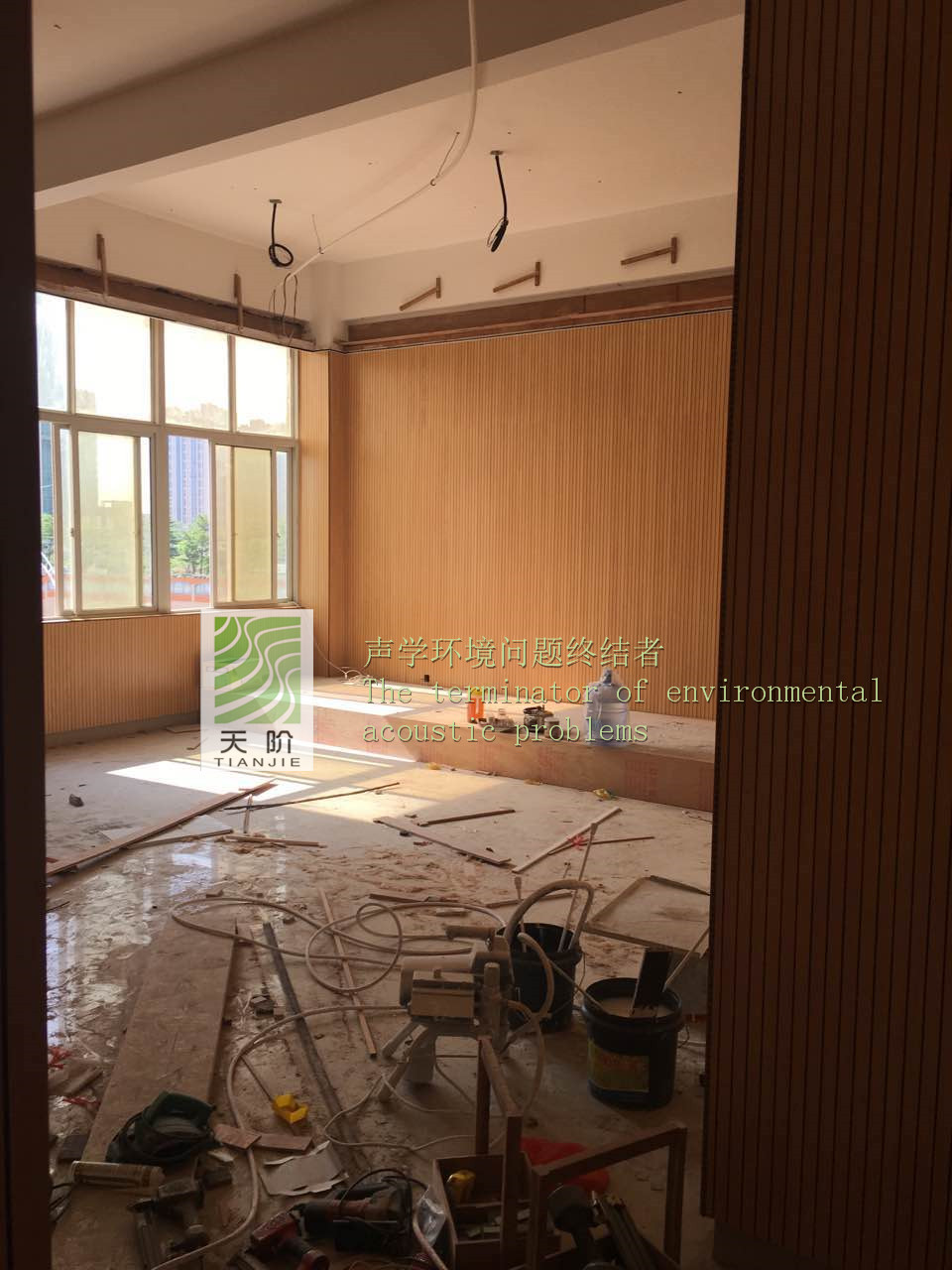 佛山天階吸音板生產(chǎn)廠家 發(fā)布日期:2016-10-05 福建省泉州市惠安縣政府對青少年宮非常的重視,特地邀請了專家對舞蹈室、鋼琴室、教室進(jìn)行了吸音設(shè)計。教室的聲學(xué)設(shè)計應(yīng)以語言清晰度為主,教室的混響時間長短、背景噪聲、響度對語言清晰度影響最大。不同大小的教室,對混響時間長短的要求會有所不同。教學(xué)場所要求較高的語言清晰度,需要較短的混響時間,可以通過室內(nèi)選用合理的吸音材料和現(xiàn)場裝修布置達(dá)到。室內(nèi)墻面是聲學(xué)裝修時面積最大可供利用的表面,所以決定在四周的墻面上安裝槽木吸音板,此時使用了我們天階牌的槽木吸音板共2000平方。