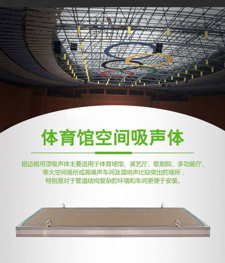 佛山天階吸音板生產廠家 發布日期:2018-01-05 體育館吸音材料指的是室內墻體及體育館吊頂吸音材料。該場所墻面所采用的吸聲板分別有:槽木吸音板、孔木吸音板,天花吊頂采用的是空間吸音體,這幾種結構吸聲材料。那現在讓我分為介紹一下這兩款體育館吸音材料的特性!
